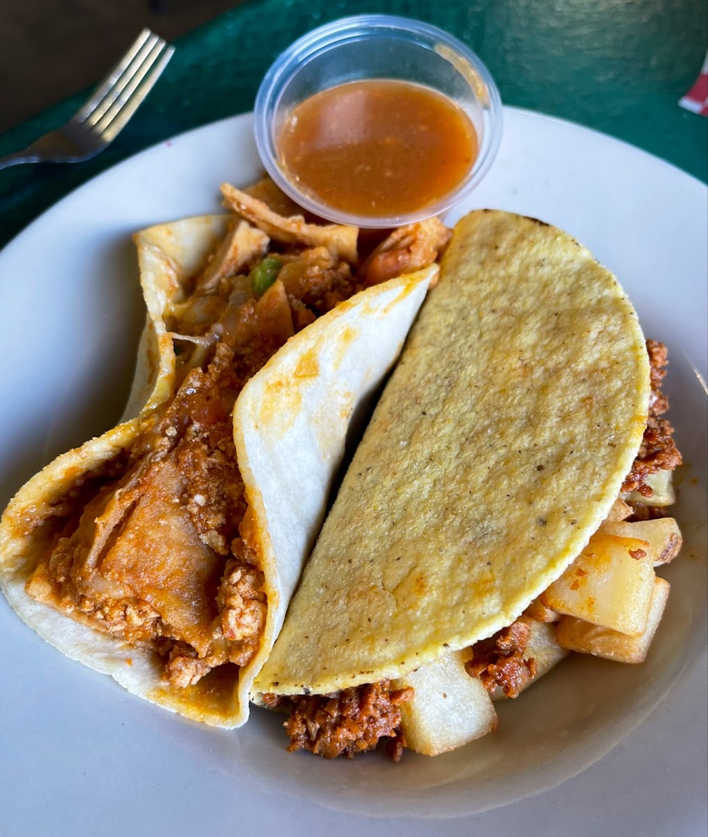 What stands out right away is how the menu balances tradition and creativity. You’ll see familiar Mexican comfort foods like enchiladas, tamales, and tacos, but everything is plant-based and thoughtfully prepared. Instead of feeling like substitutions, the ingredients feel intentional. The soy chorizo has real spice, the cashew-based sauces are creamy without being heavy, and the fresh vegetables are treated as the stars. One of my regular orders is the veggie plate because it gives a little tour of the kitchen-beans, rice, salad, and a rotating hot dish that changes depending on the day. It’s the kind of plate that reminds you vegetarian food can be both filling and flavorful.
