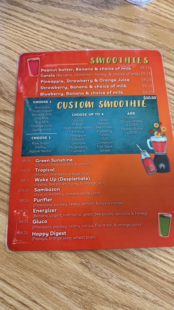 This is one way to cool down in this Texas heat. This is a frozen treat made from frozen bananas, strawberries, acai berries, and apple juice. It is blended and served on a bowl with fresh fruit and our homemade crispy granola. If you want this to be gluten free we can take off the granola and top it with pecans instead.