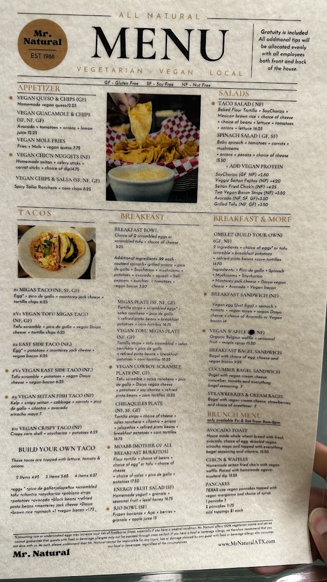 We have made this Crispy Taco cruelty free. Our homemade soy chorizo is sauteed and mixed with breakfast potatoes in a crunchy crispy taco shell. Gluten FreeNut Free